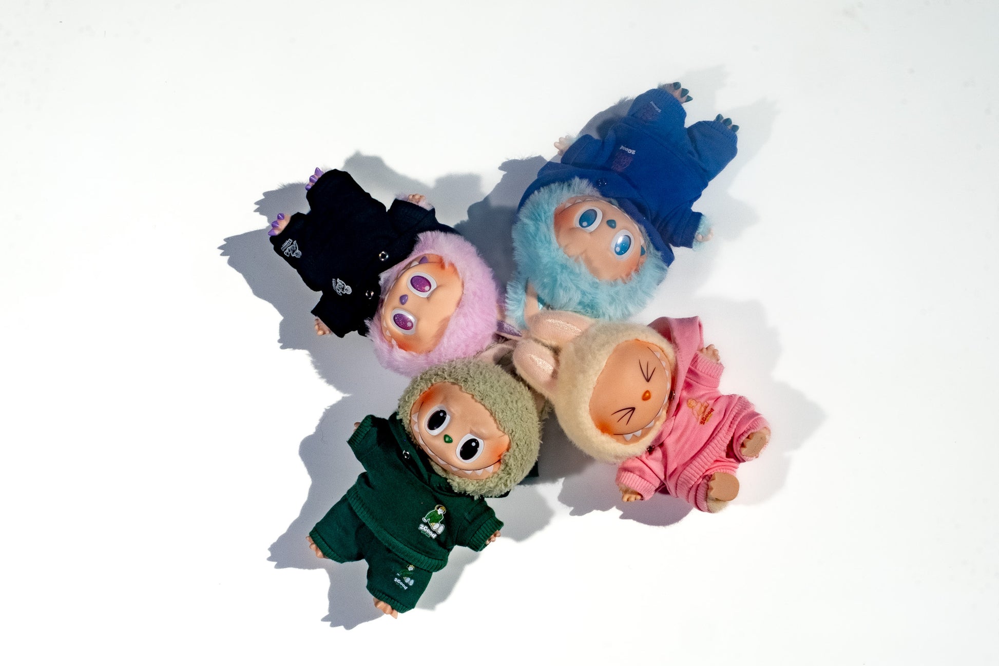 - The set (hoodie, pants) in all 4 color-ways to make sure your beloved toy stays fly.